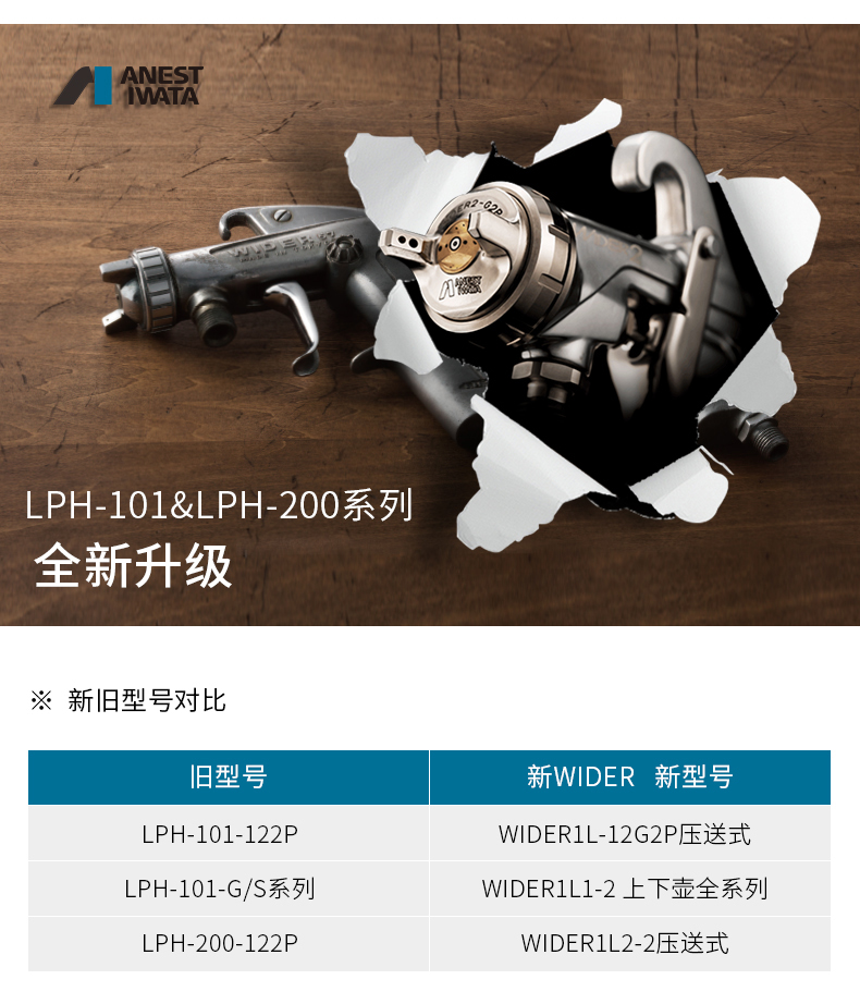 简介:WIDER1L-12G2P压送式喷枪 对应老款LPH-101-122P喷枪